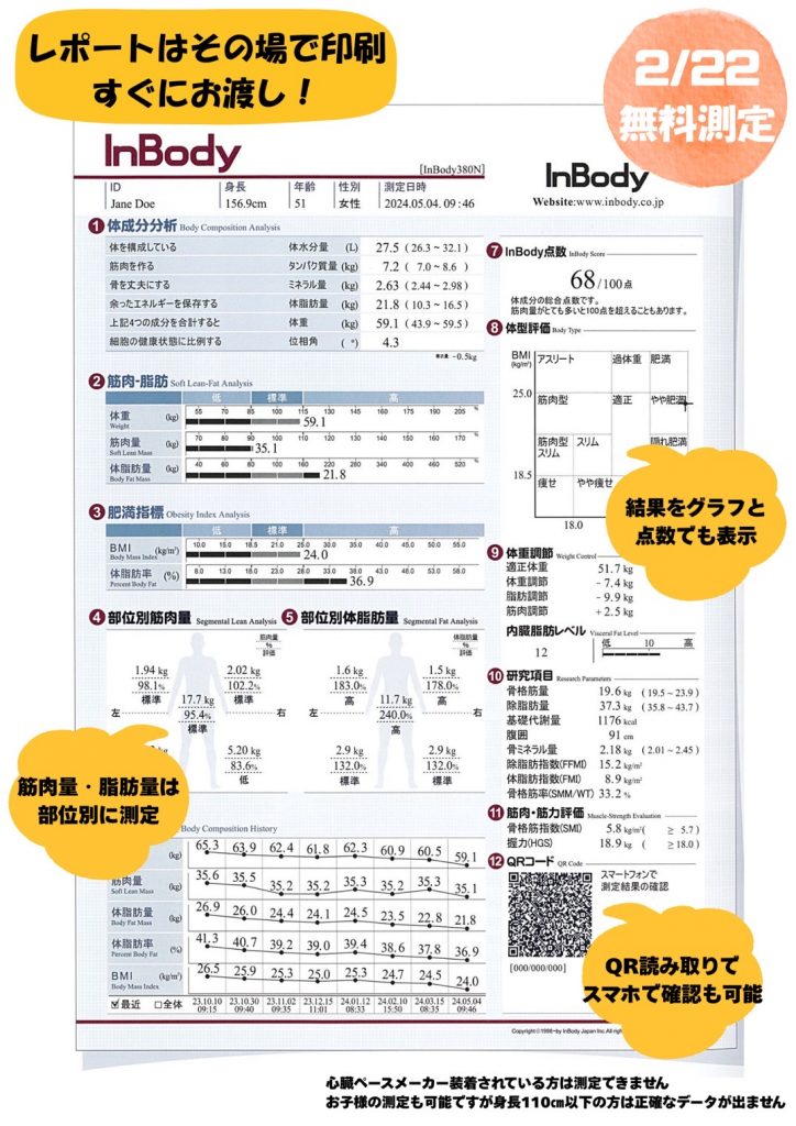 体脂肪量・筋肉量・内臓脂肪などを測定し、