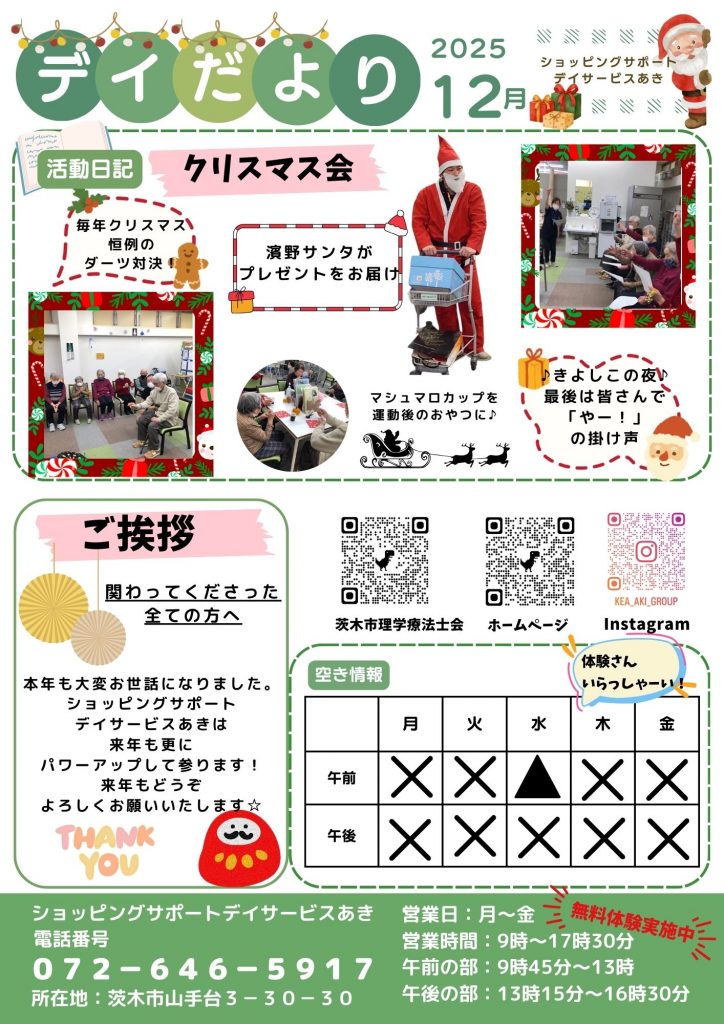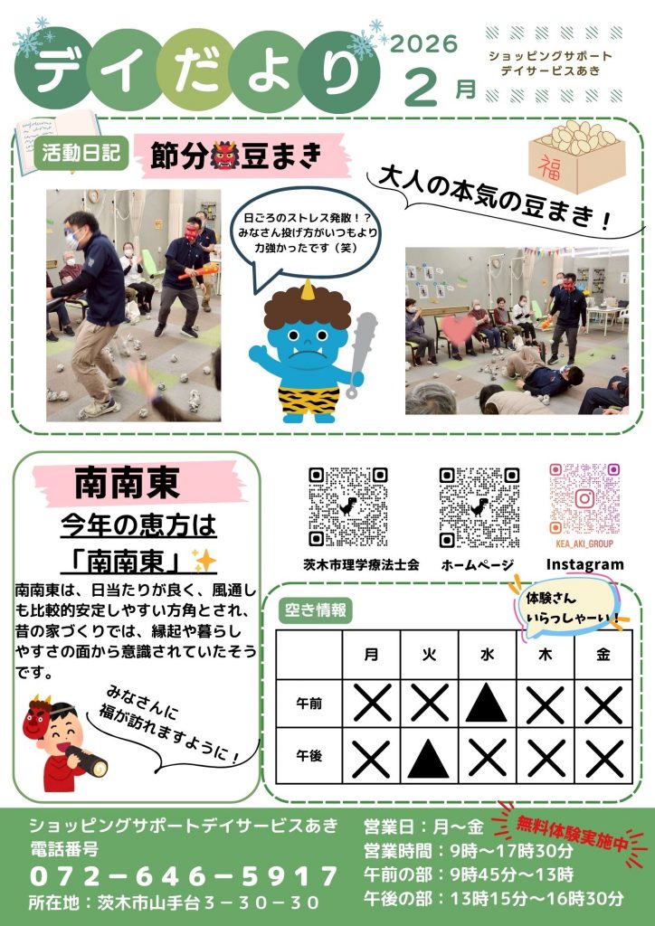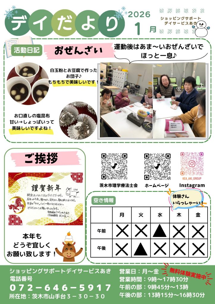 【ショッピングサポートデイサービスあき】デイだより(12,1,2月)