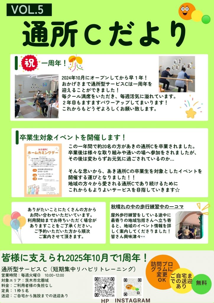 通所型サービスCは2025年10月でオープン1周年を迎えることができました!